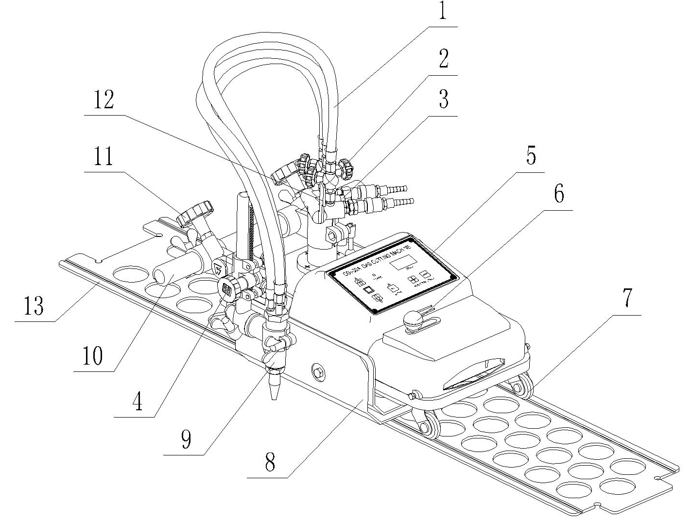 3. 氣體分配器:                                           11.橫移手輪:通過調節該手論,調節割炬