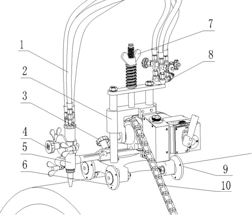 8.氣體分配器:可將氣體分為預熱氧、快氧、切割氧