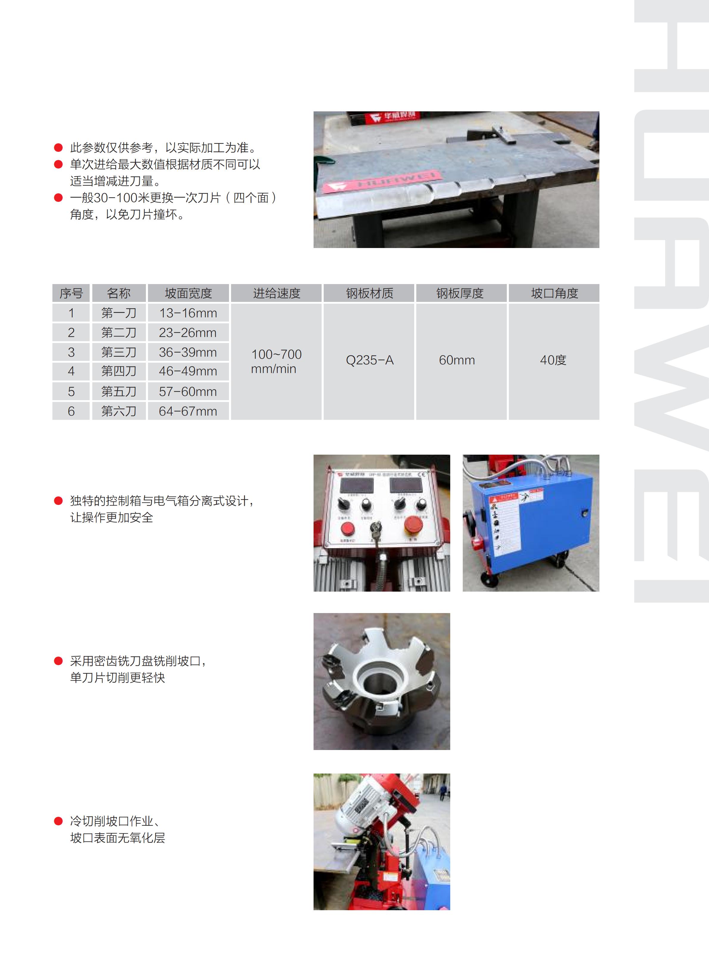本產品是一款自動行進式銑邊設備,加工坡口過程中自動行進銑削,降低使用成本,減輕勞動強度,采用冷切削作業,加工后的坡口表面無氧化。坡口表面光潔度Ra3.2~6.3.完全符合焊接行業要求,無需去毛刺處理可以立即焊接使用,本品無污染,操作更加簡單。