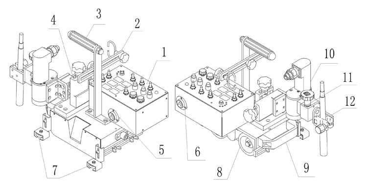 12.焊槍夾持器總成:是焊槍的夾持裝置,可以方便地進(jìn)行維修、調(diào)整和焊槍的拆卸。