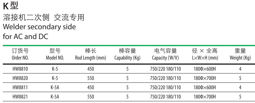 K型 熔接機(jī)二次側(cè)交流專(zhuān)用。